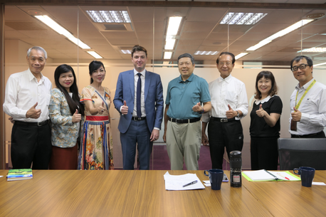 台灣碳權國際論壇與會各界專家學者,(左起)台北清華校友會會長韋伯韜、商總理事長許舒博、商發院董事長許添財、前行政院長張善政、台綜院副院長李明堅、清華大學原子科學院長李敏、台北智庫董事長高鼎宸、碳資產管理公司總經理姚新基。